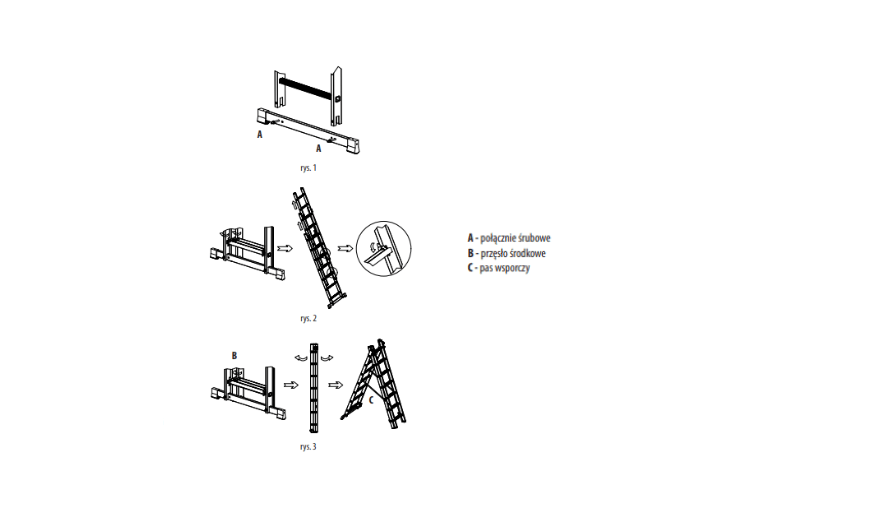 Drabiny 3-elementowe należy rozstawiać według poniższego schematu.
