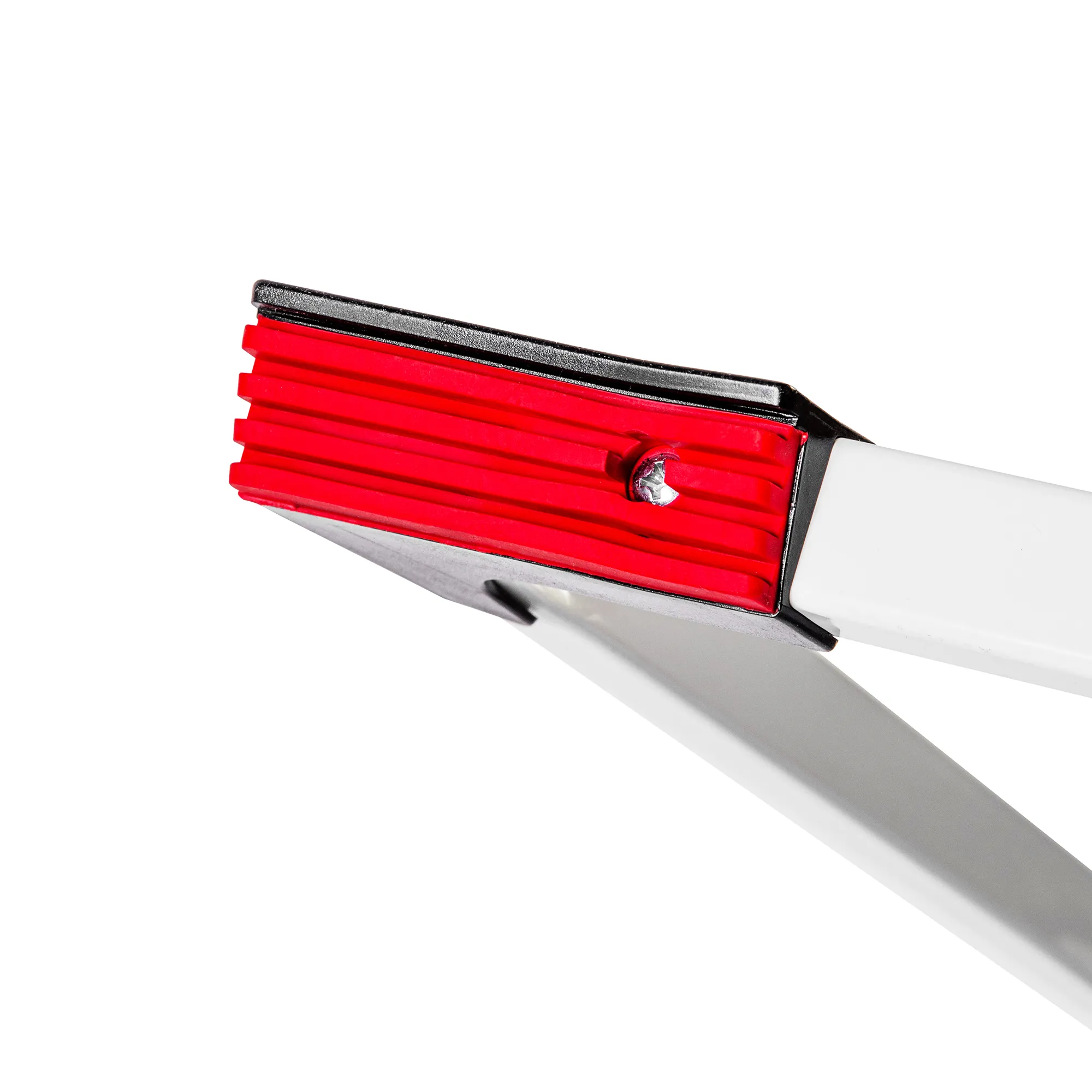 | wyposażona w gumowe stópki antypoślizgowe, które dodatkowo stabilizują rozstawioną drabinę i zapobiegają ślizganiu |