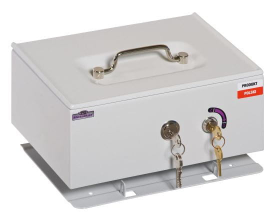 Kasetka metalowa z podwójnym dnem 2PB-A4 z dwoma zamkami kluczowymi szara + wkład na bilon (EUR)