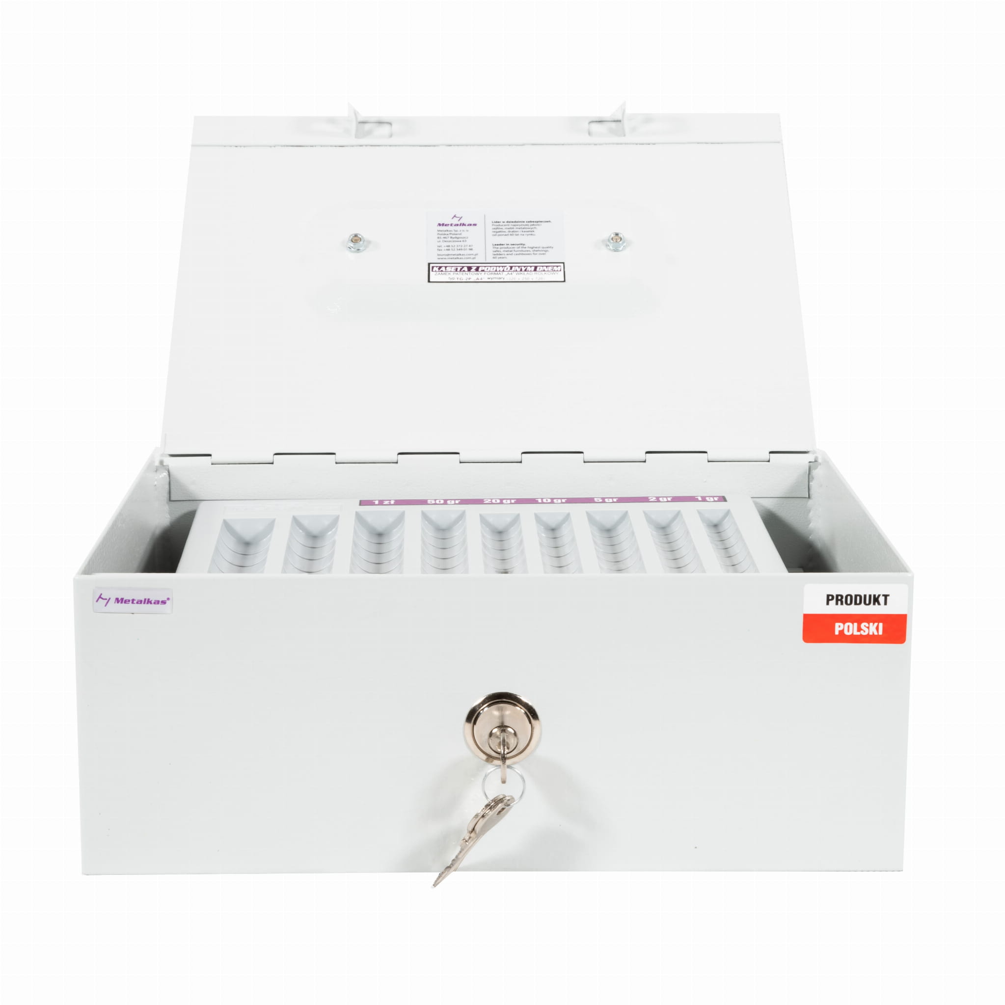 Kaseta na pieniądze i bilon z podwójnym dnem TG-2P Metalkas - Bezpieczne przechowywanie wartościowych przedmiotów