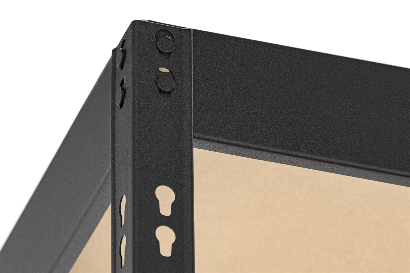 Metalowe elementy regału Metalkas LONG 180x160x60 są pomalowane matową farbą proszkową w kolorze czarnym, które świetnie współgrają z jasnymi półkami, dając ciekawy, loftowy wygląd. Ten solidnie wykonany mebel posłuży na lata zarówno w domu, jak i w firmach, zaskakując swoją użytecznością. Miłą niespodzianką dla posiadaczy regału metalowego Metalkas LONG 180x160x60 będzie łatwy i szybki montaż na wcisk, który nie wymaga żadnych dodatkowych narzędzi. W komplecie znajdziesz również 4 plastikowe stopki zapewniające jeszcze większą stabilność konstrukcji regału.