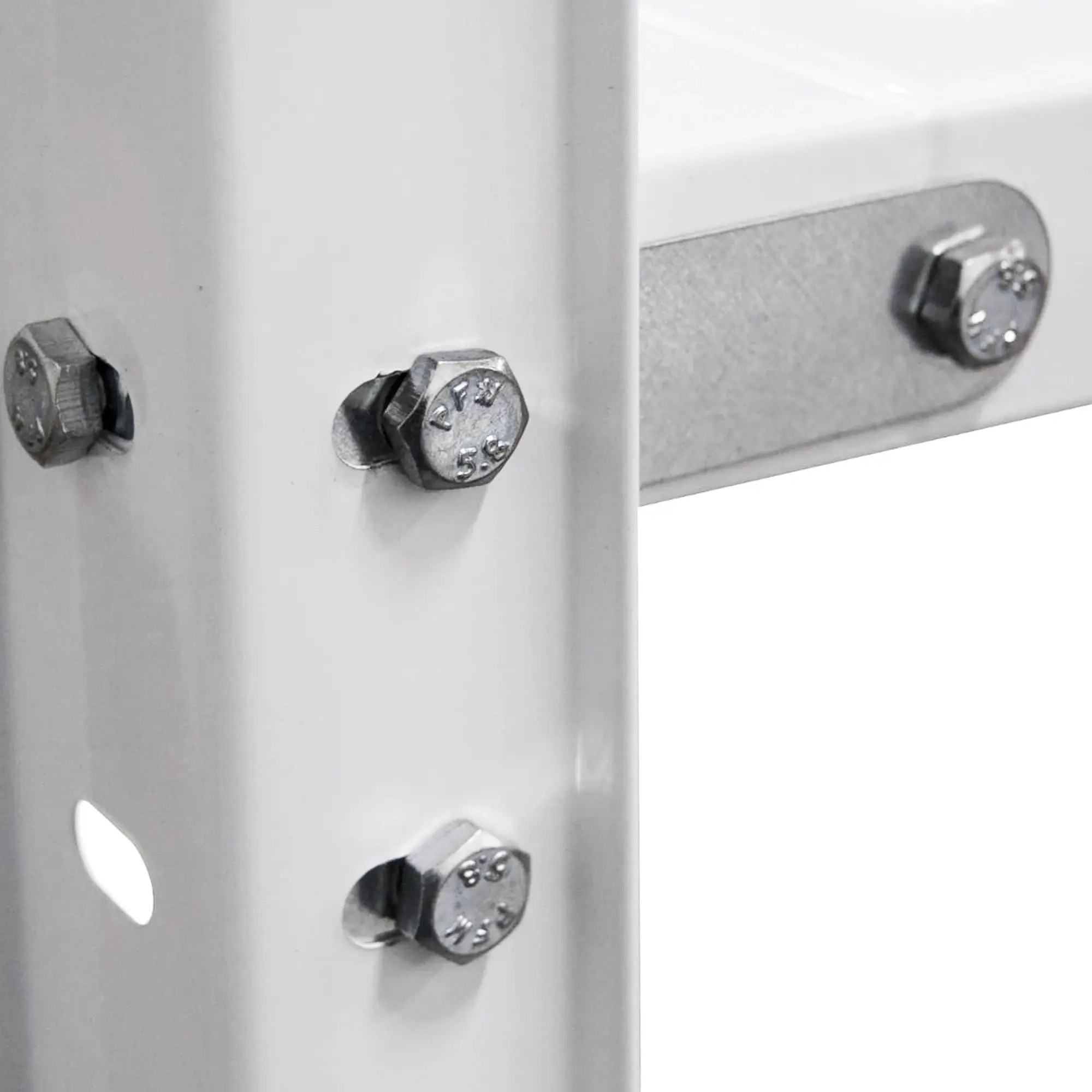 Dzięki skręcanemu systemowi montażu, regał jest łatwy do złożenia, a ocynkowane śruby gwarantują trwałość konstrukcji. Dodatkowo, stopki stabilizujące i otwory do przytwierdzenia do ściany zwiększają stabilność, co jest istotne w przypadku przechowywania cięższych przedmiotów.