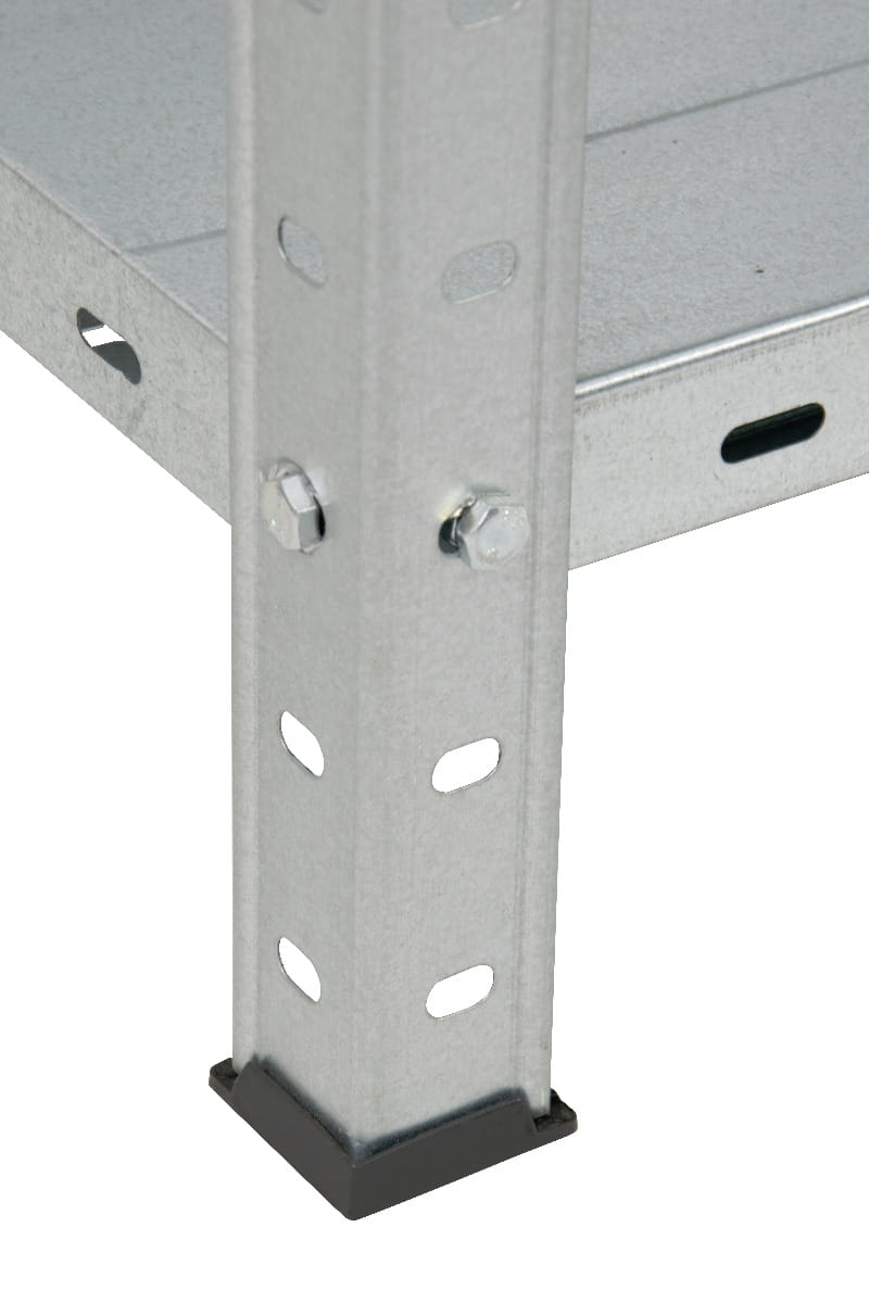 Montowany za pomocą śrub, regał jest bardzo stabilny. Jego nośność na jedną półkę wynosi 80 kg. By jeszcze lepiej zaaranżować przestrzeń magazynową, regał może być złożony jako dwa mniejsze meble, które można ustawić w szeregu lub zupełnie osobno, dzięki czemu możemy zachować porządek w pomieszczeniach gospodarczych.