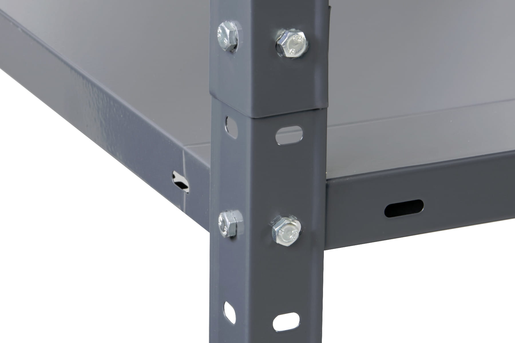 Montowany za pomocą śrub, regał jest bardzo stabilny. Jego nośność na jedną półkę wynosi 80 kg. By jeszcze lepiej zaaranżować przestrzeń magazynową, regał może być złożony jako dwa mniejsze meble, które można ustawić w szeregu lub zupełnie osobno, dzięki czemu możemy zachować porządek w pomieszczeniach gospodarczych. Pokrycie farbą proszkową chroni przed korozją jednocześnie podnosząc estetykę modelu.