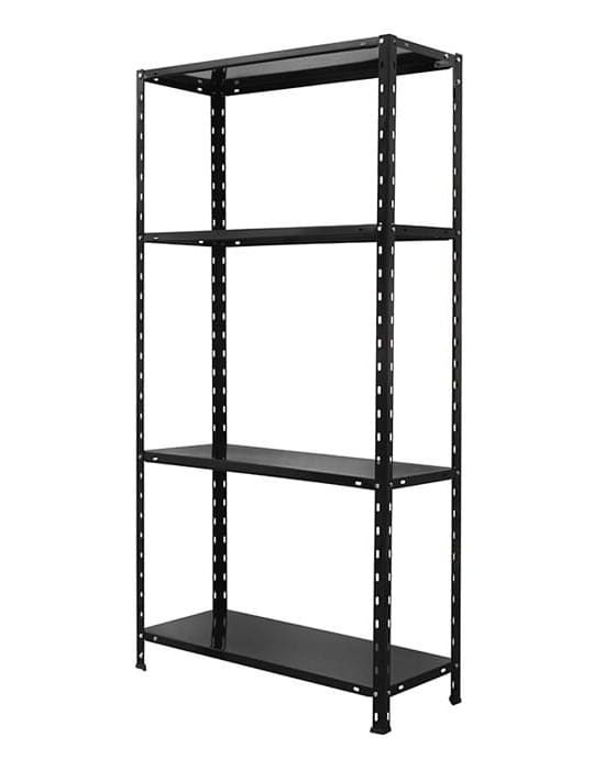Czarny regał metalowy skręcany