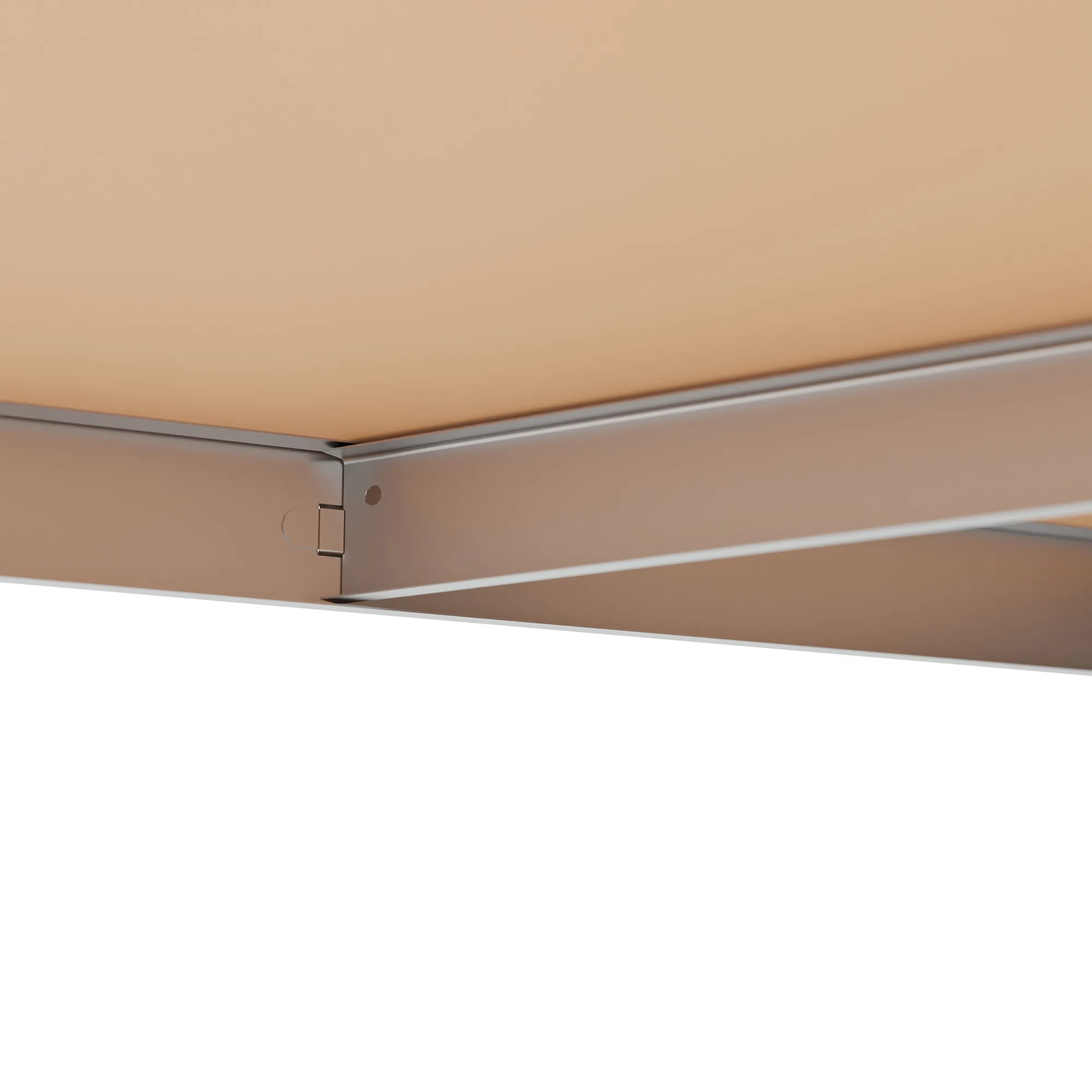 Konstrukcja z giętej blachy eliminuje ostre krawędzie, co zwiększa bezpieczeństwo użytkowania. Montaż regału jest prosty i szybki dzięki systemowi wciskanemu, co pozwala na łatwe i wygodne ustawienie w dowolnym miejscu.