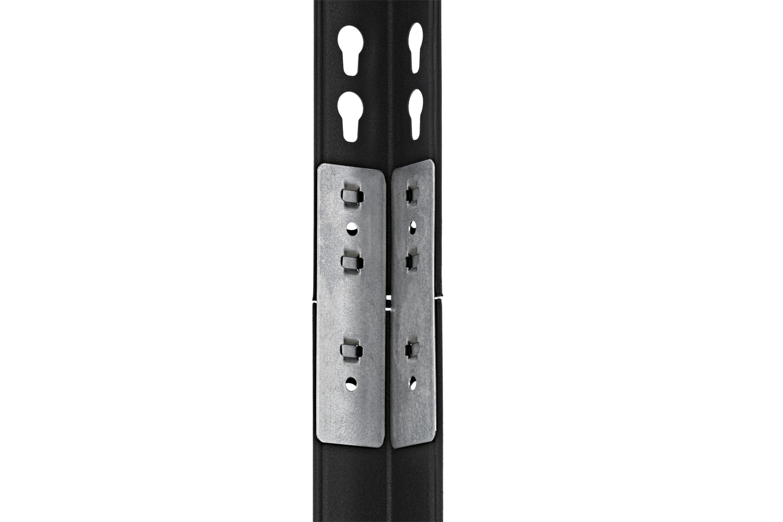 Prosty montaż polegający na wciskaniu elementów gwarantuje szybkie i łatwe złożenie całości bez konieczności użycia narzędzi, ani wsparcia specjalisty. Wygodne do montowania nity usprawniają proces. Po złożeniu regał stoi solidnie i stabilnie, pomimo braku konieczności wykorzystania śrub.