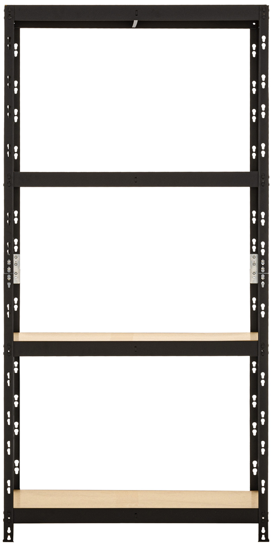 Regał posiada cztery regulowane półki wykonane z wysokiej jakości płyt HDF. Każda z nich ma nośność 360kg i została dodatkowo wzmocniona poprzez montowany od dołu metalowy wspornik. Regał w całości został pomalowany proszkowo na czarny kolor. Ten sposób pokrycia mebla farbą gwarantuje jednolity nasycony kolor, który utrzyma się przez lata, a także ochronę przed korozją czy innymi uszkodzeniami mechanicznymi.
