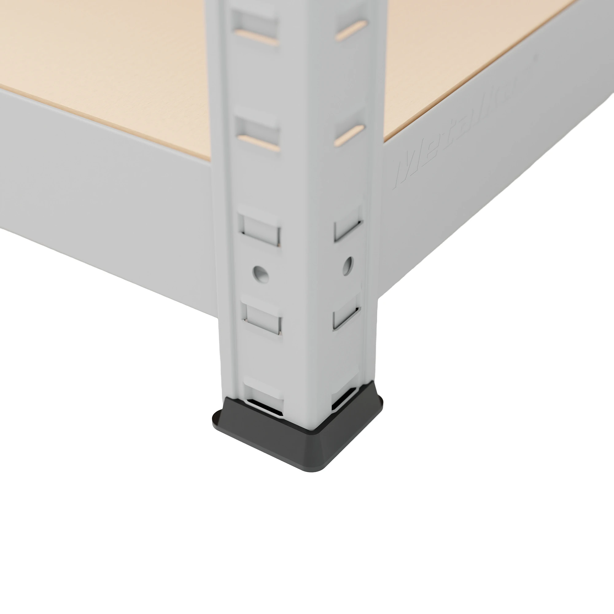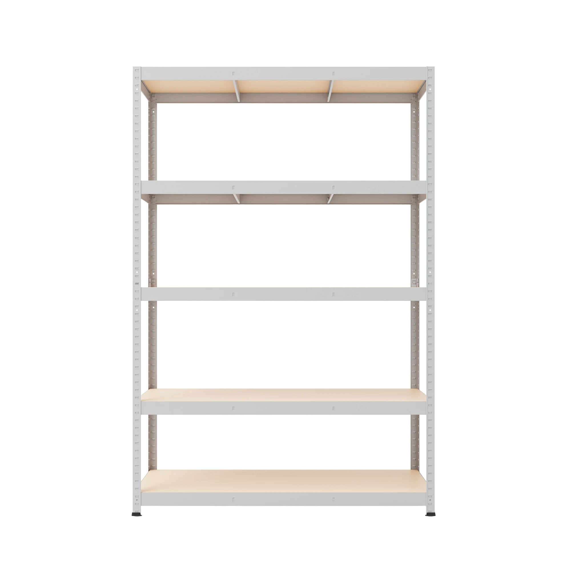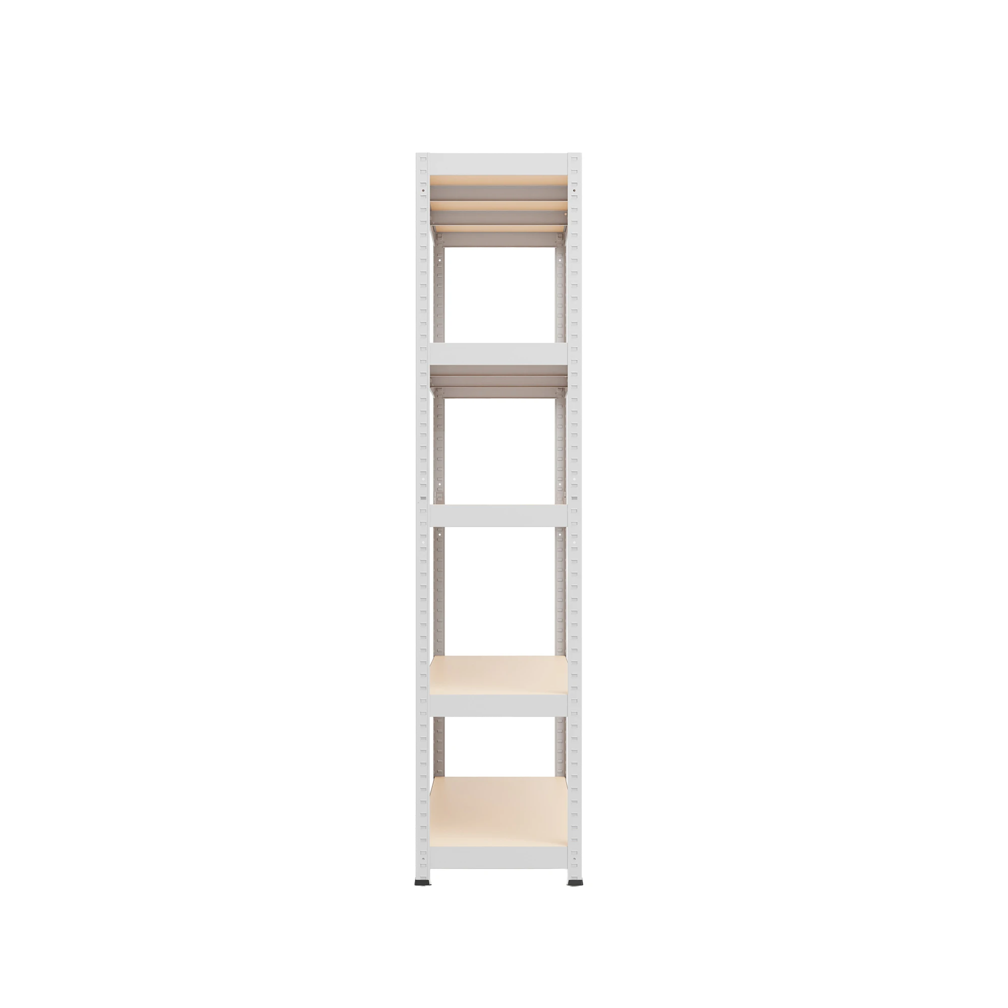 Wyposażony w 5 półek z możliwością regulacji wysokości, umożliwia elastyczne dostosowanie do różnorodnych potrzeb przechowywania. Każda półka wykonana jest z wytrzymałej płyty MDF o grubości 5mm, co zapewnia stabilność i trwałość konstrukcji. Dzięki nośności na półkę do 265kg, regał bez trudu utrzyma cięższe przedmioty, zapewniając jednocześnie bezpieczeństwo użytkowania dzięki giętym krawędziom blachy, które eliminują ryzyko skaleczeń.