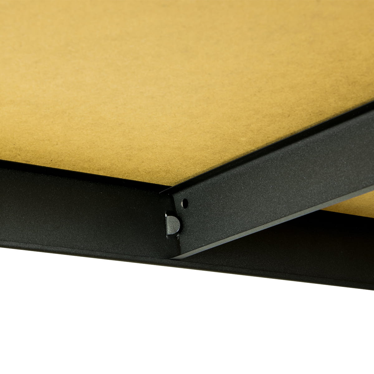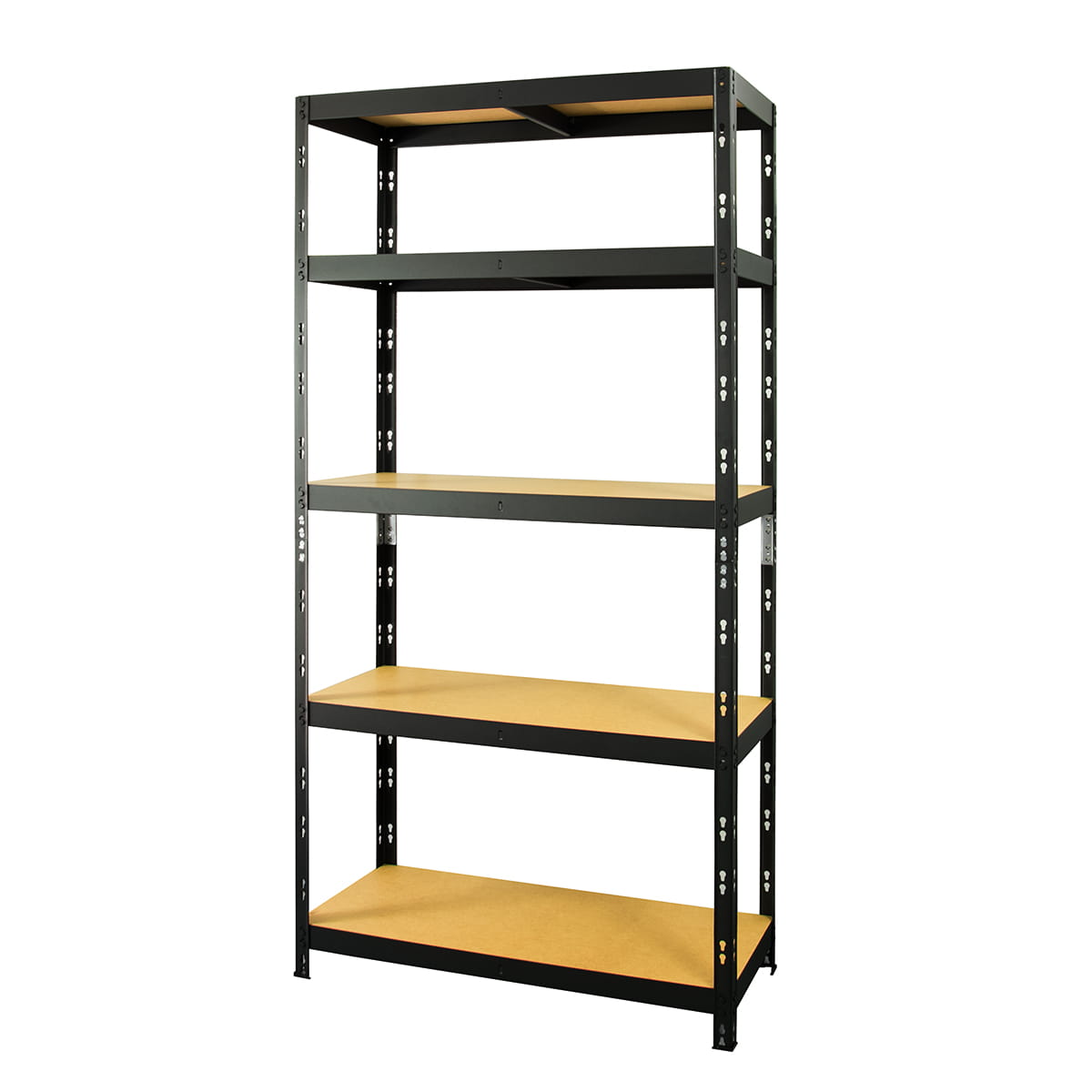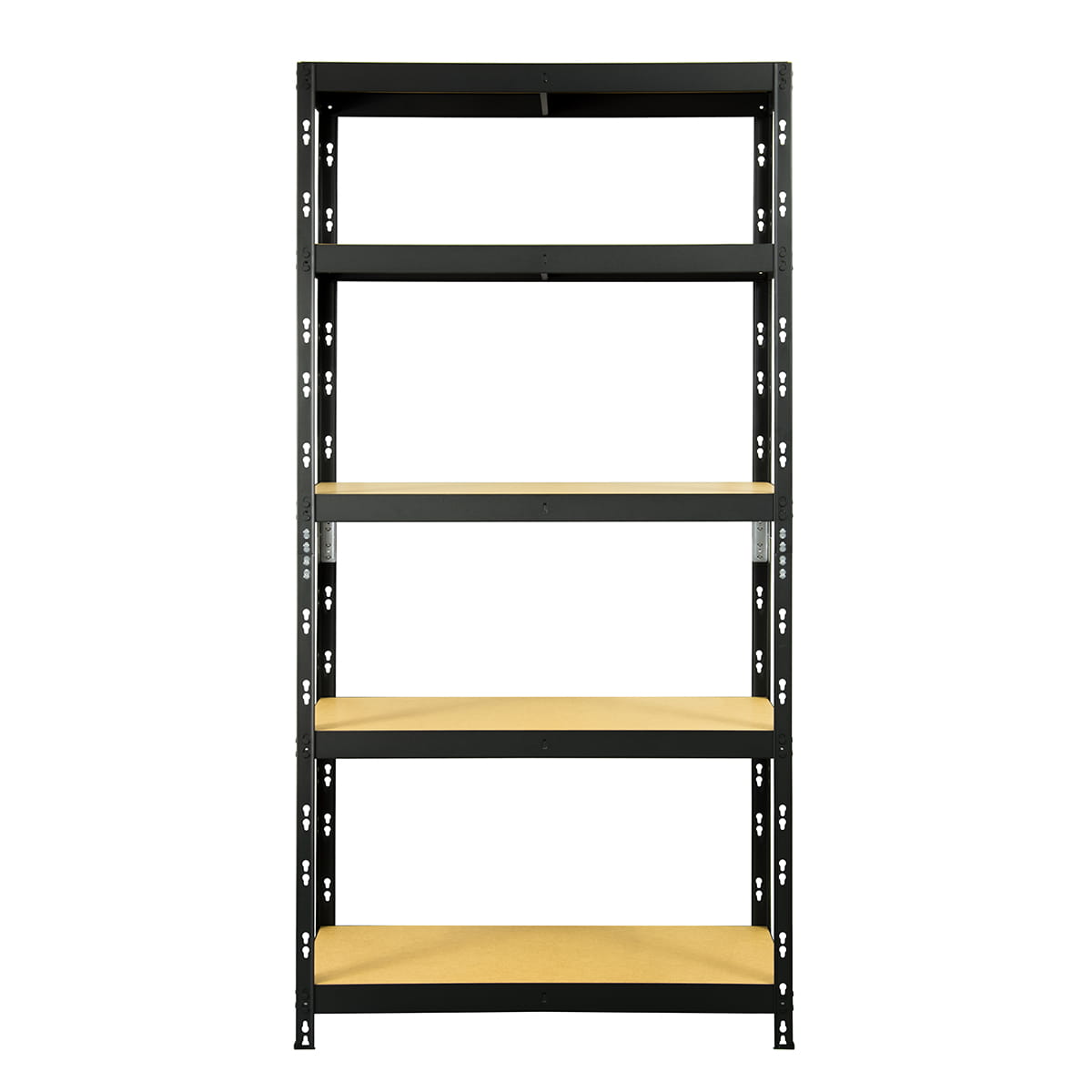 Regał posiada pięć półek z płyty HDF, które można regulować co 30 mm, pozwala to na elastyczne dostosowanie przestrzeni do indywidualnych potrzeb. Każda półka utrzyma ciężar 200kg, co czyni regał niezwykle wytrzymałym i idealnym do przechowywania ciężkich przedmiotów.