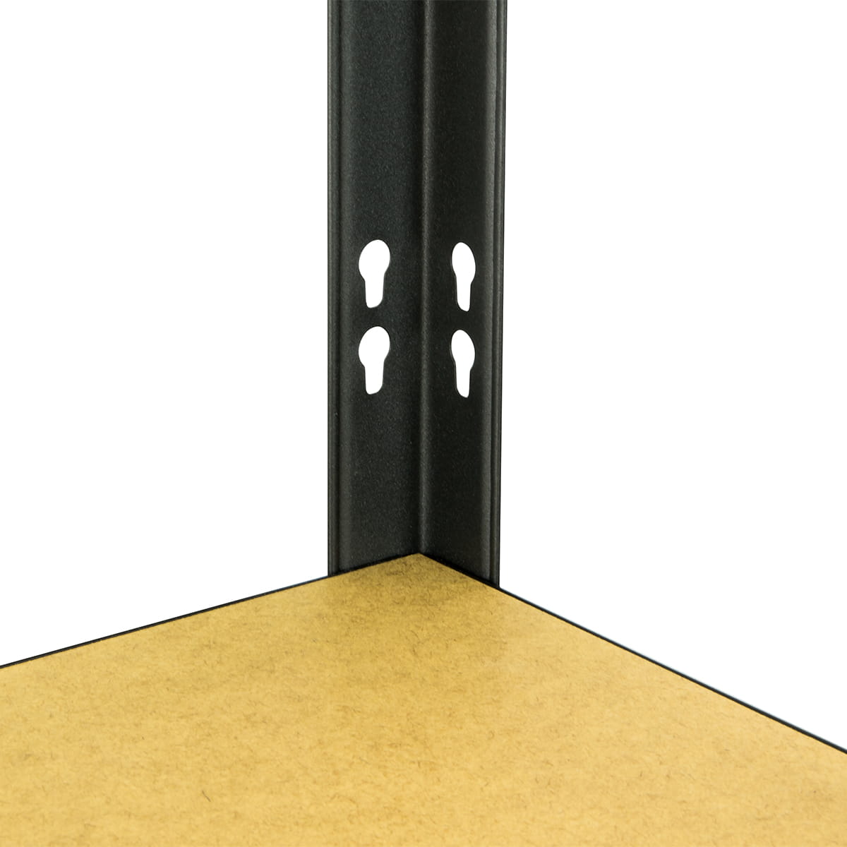 Regał metalowy nitowany o wymiarach 180x90x40 cm to wyjątkowo funkcjonalne i wytrzymałe rozwiązanie do przechowywania w magazynach, garażach i warsztatach. Dzięki malowaniu ekologiczną farbą proszkową w kolorze czarnym, regał nie tylko świetnie wygląda, ale również jest odporny na korozję.