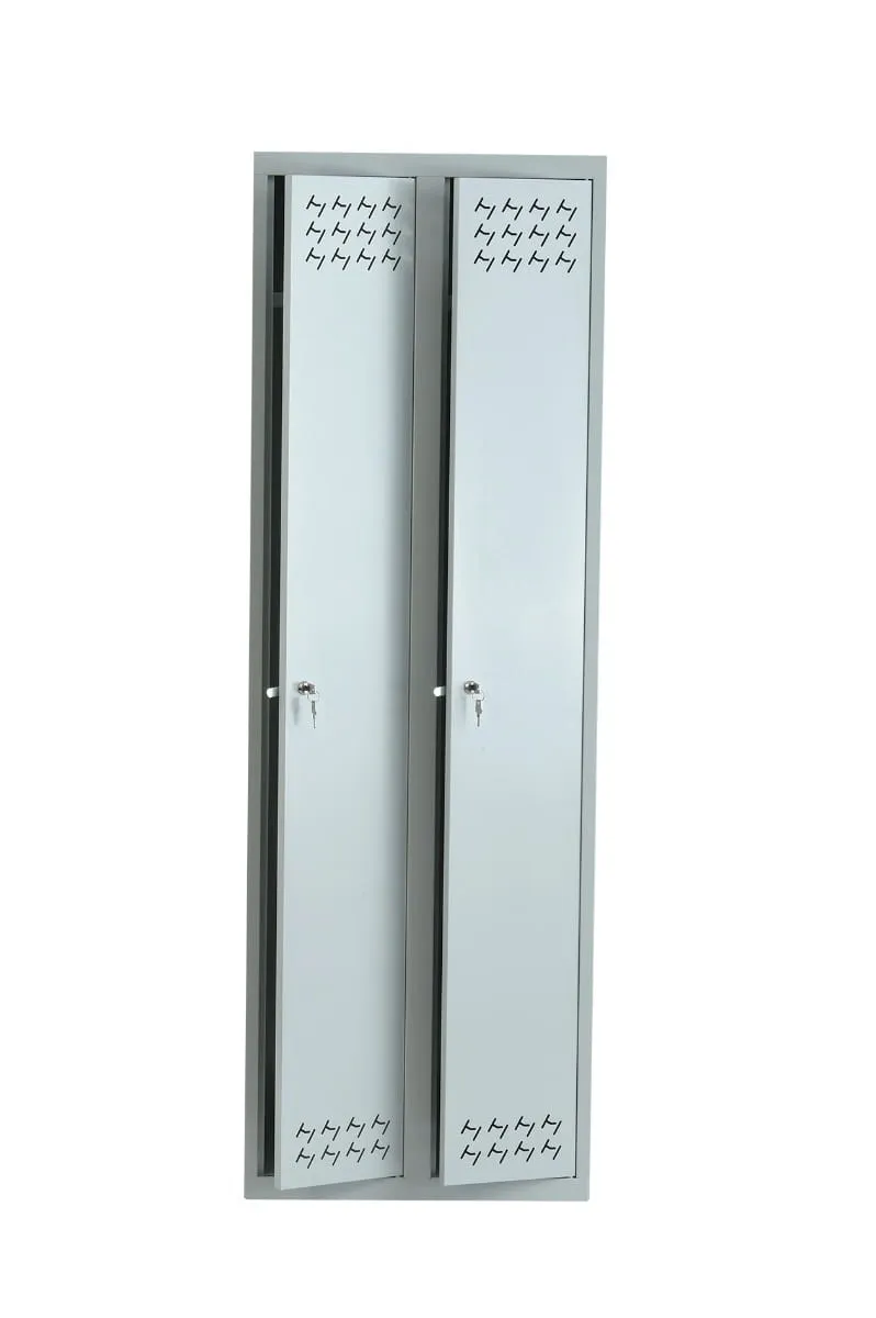 Szafa wykonana została z wysokiej jakości blachy o grubości 0,5 mm oraz zespawana, co sprawia że jest to bardzo wytrzymały produkt, który posłuży przez wiele lat. Dodatkowo szafa wyposażona jest w zamek cylindryczny oraz dwie pary kluczy w zestawie, aby zagwarantować bezpieczeństwo i ochronę przedmiotów prywatnych.