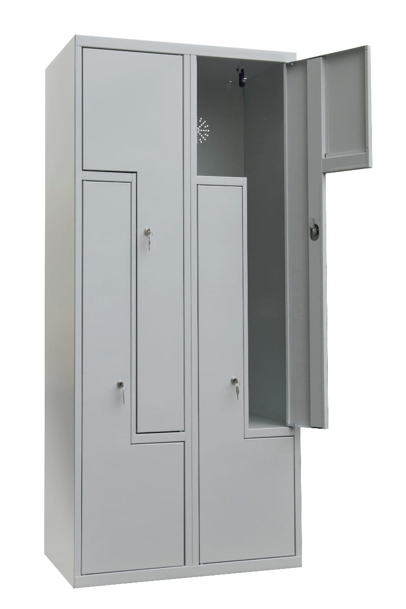 Szafa ubraniowa typu L została zaprojektowana z myślą o zapewnieniu praktycznego i efektywnego przechowywania odzieży. Dzięki inteligentnej konstrukcji w kształcie litery L, zapewnia miejsce na zawieszenie odzieży oraz umożliwia umieszczenie okrycia wierzchniego na półce. Podział na dwie komory jest także sposobem na efektywne zagospodarowania miejsca. Obie komory wyposażone są w haczyk, który umożliwia przechowywanie odzieży. Szafa doskonale sprawdzi się w szatni basenowej, na siłowni, czy innym obiekcie sportowym. Będzie także odpowiednim meblem do zakładu pracy, gdzie pracownicy noszą odzież roboczą.