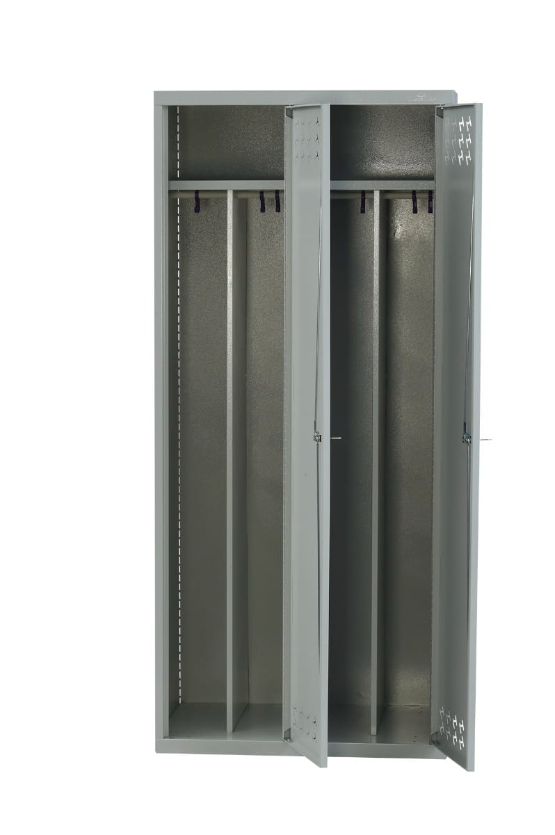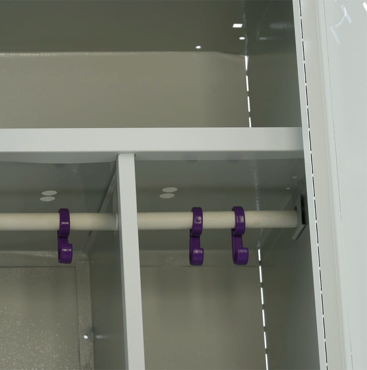 Szafa 3MSU-ECO została zaprojektowana z myślą o przechowywaniu odzieży w sposób funkcjonalny i wygodny. Każda komora wyposażona jest w przegrodę, która umożliwia oddzielenie odzieży czystej od roboczej, zapewniając odpowiednią organizację i porządek. Wnętrze dodatkowo wyposażone jest w półkę z zamocowanym pod nią drążkiem z haczykami.