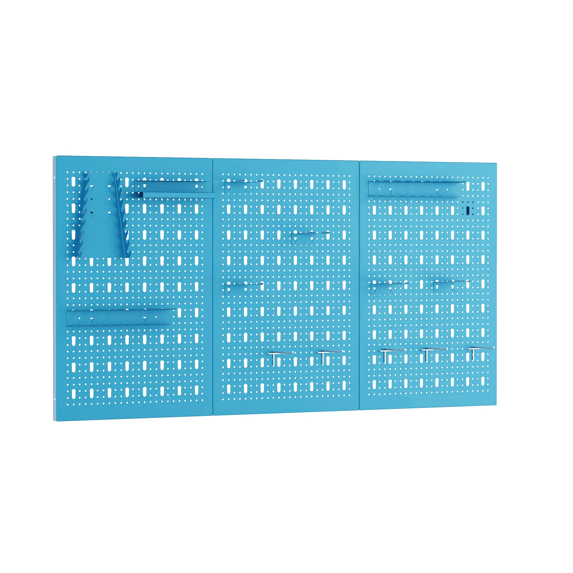 Wykonane z solidnej stali, malowane ekologiczną farbą proszkową na niebiesko, są odporne na uszkodzenia mechaniczne, korozję i intensywną eksploatację. Dzięki perforowanej powierzchni o wymiarach po 60x120 cm, każda tablica z łatwością pomieści najważniejsze narzędzia ręczne, klucze, wkrętaki czy akcesoria warsztatowe, a w zestawie pozwolą na komfortowe przechowywanie jeszcze większej liczy akcesoriów lub przygotowanie podwójnego stanowiska pracy.